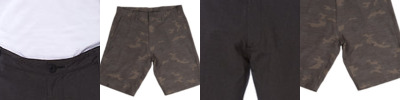90%/10% poly/spandex stretch fabric; UV protection; Salt and chlorine water fade resistance ; Mesh pocket bags ; Back left mesh welt pocket with zipper; Zipper front with button closure; 2 side slash pockets; 2 back pockets; Belt loops;