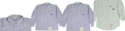 7 oz., 100% flame resistant twill; Meets the requirements of ASTM F1506, NFPA 70E, NFPA2112, and OSHA 1910.269; Button front; Pockets with flaps and button closures; Pencil slot on left pocket; Triple-needle stitched main seams; Adjustable button cuffs;