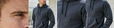 - Contrast color drawcord in scuba shaped hood on sizes M-2XL only