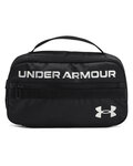 100% polyester; UA Storm technology delivers an element-battling, water-repellent and stain-repellent finish; Large main compartment fits toiletries with full length zipper so it can lay flat; Front dual-access pocket & large internal mesh pocket; Tough, PU-coated bottom & back panels for added durability; Dual-carry side & top strap construction for multiple ways to carry or hang-up; Dimensions: 3.7"W x 6.3"H x 9.8"L; Volume: 4 L;