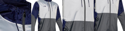 3.17 oz., 100% polyester; UA Storm technology repels water without sacrificing breathability; Wind-resistant construction shields you from the elements; Adjustable hood with extended brim; Full mesh lining for added breathability; Secure, zip hand pockets with ribbed cuffs and heatseal logo ; Dropped, shaped hem; Internal locker loop;
