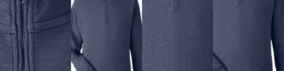 - 12.5 oz./yd² (420gm), 75/25 ring-spun cotton/polyester 3-end fleece with 100% cotton face yarns on solid colors, 21 singles