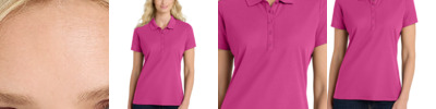 A modern tribute to the unparalleled Nike heritage, this sophisticated polo has a subtle, grid-like texture and is engineered with Dri-FIT moisture management technology. Tailored for a feminine fit. Design details include a self-fabric collar with an open Y-neck placket and open hem sleeves. The contrast heat transfer Swoosh design trademark is on the left sleeve. Made of 4.2-ounce, 100% polyester Dri-FIT fabric.