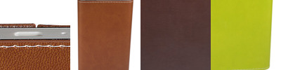- Holds ID/business card behind acetate viewing window on back panel hidden by leather flap