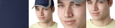 - Navy crown with contrast Red eyelets and button