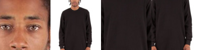 - Striped rib on neck, cuff, and waist