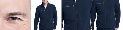 This super soft and warm jacket is as comfortable as it gets for fall hikes and everyday excursions. Contrast rolled top collar, zippered chest pocket, reverse coil contrast zippers, front zippered pockets with tricot lining, open cuffs and an open hem. Contrast Eddie Bauer logo embroidered on right chest. Made of 12-ounce, 100% polyester fleece which incorporates Low Impact Technology™ for enhanced softness and performance.