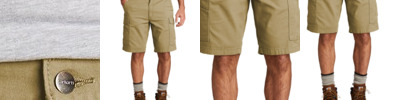 Lightweight, flexible and built to last, these shorts give you the freedom to move through your work or while doing yardwork on the weekend. 8.5-ounce, 98/2 cotton/spandex canvas Rugged Flex ® durable stretch technology for ease of movement Sits at the waist Comfortable fit through the seat and thigh with room to move Left-leg cargo pocket with secure cell phone storage Right-leg cargo pocket with utility pocket Stronger sewn-on-seam belt loops Heavy hauling reinforced back pockets Hidden hook and loop closures on cargo and back pocket flaps 11-inch inseam Carhartt label sewn on right rear pocket Relaxed fit