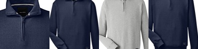 60% cotton, 40% polyester mercerized fleece; Nautica branded quarter-zip closure with stand collar; Striped neck tape; Ribbed cuffs & hem; Welt handwarmer pockets; Nautica J-Class label at left hem;